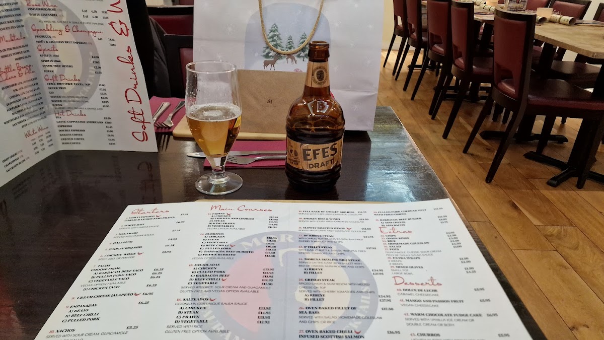 Slowly cooked beef brisket, cooked in Dark ale with unique Mexican spices.Served with chips and coleslaw